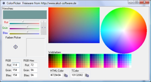 Farbenanzeige und Grabber-Tool zeigt die Farbdaten in HTML-Color und TColor an.